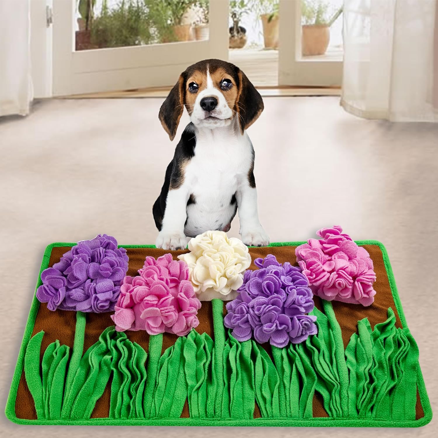 Measuring 23.62 x 15.75 inches, it’s designed to suit dogs of all breeds and sizes. The bright hyacinth flower design not only looks great but also makes foraging fun and stimulating. Hide treats or kibble among the folds and let your Snuffle Mat, search, and discover—it’s a great way to relieve stress and burn off excess energy.